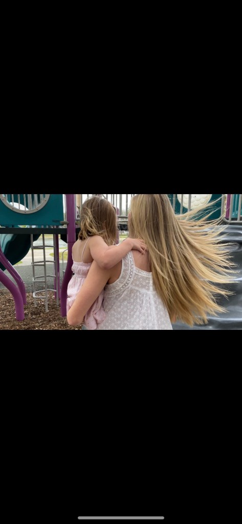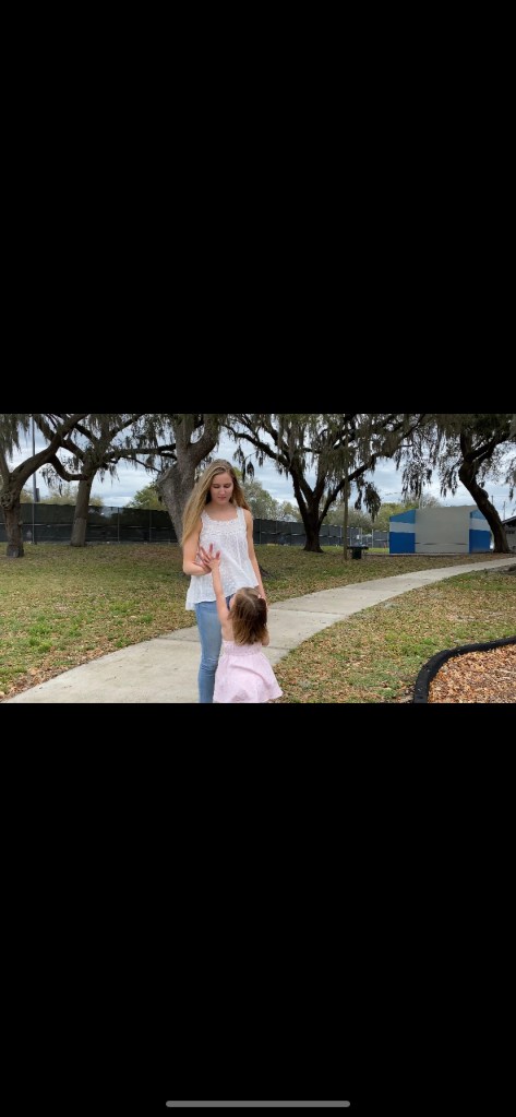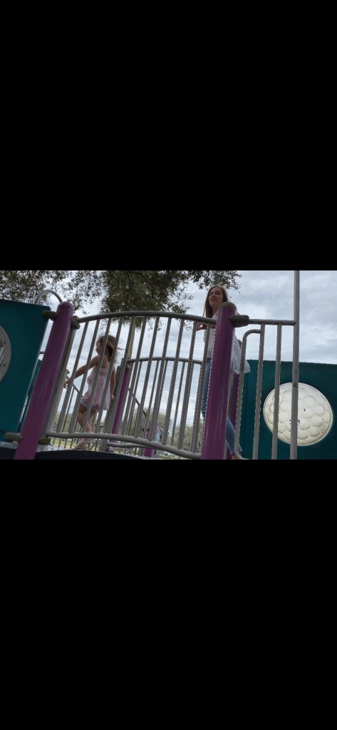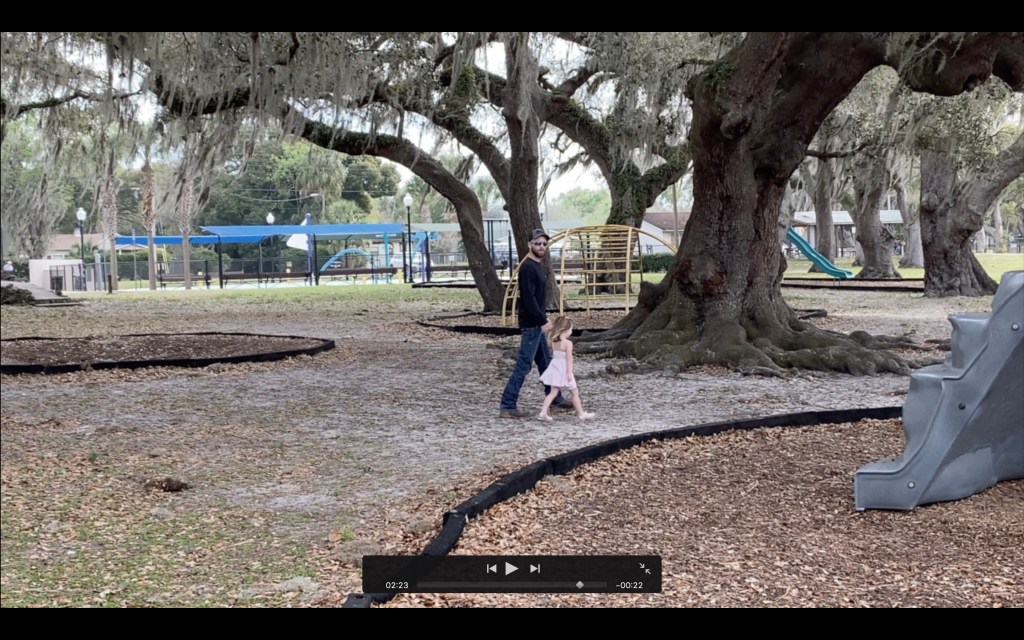 Here is a screenshot from a video we took while shooting. Amzie was not being compliant just because she was camera shy. I carried her and played with her on the playground for a little bit just do she would get used to it.